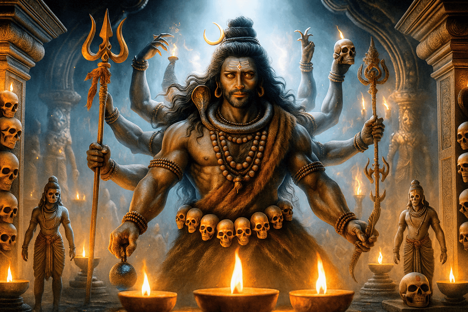 Bheeshana Bhairava represents the ultimate protector of devotees. He instills fear in negative forces and safeguards spiritual seekers from harm. His presence in one’s life signifies courage, resilience, and unwavering faith in divine protection.