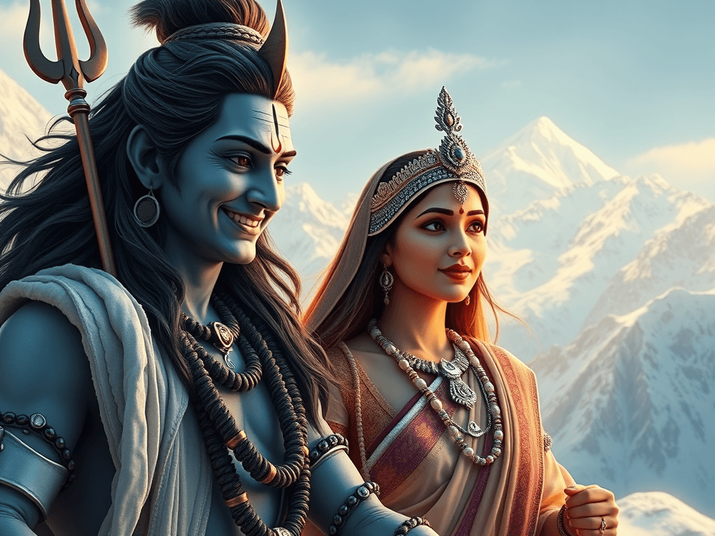High in the majestic Himalayas, where the snow-capped peaks touch the sky, Lord Shiva and Goddess Parvati wandered through the serene landscape. The crisp mountain air carried whispers of divine energy as they discussed the mysteries of life and death. Parvati, with deep curiosity, asked Shiva about the secret of immortality. Shiva smiled, knowing that such knowledge was sacred and required a special place for its revelation.
